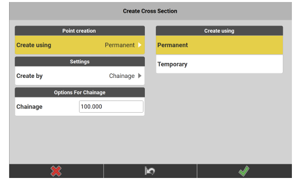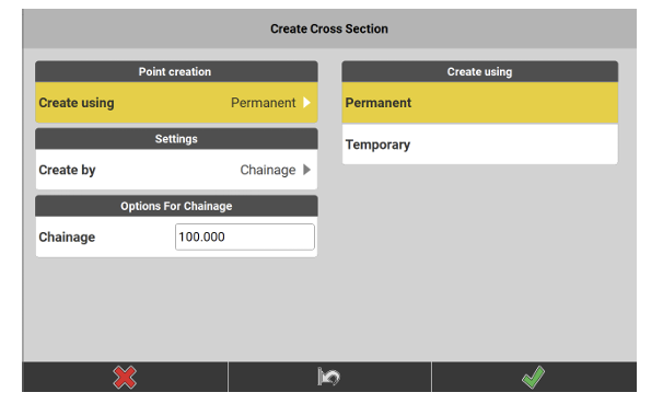 The Create Cross Section page is displayed. - Select Create using > Permanent.