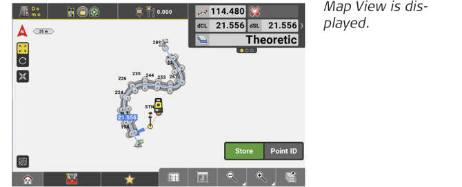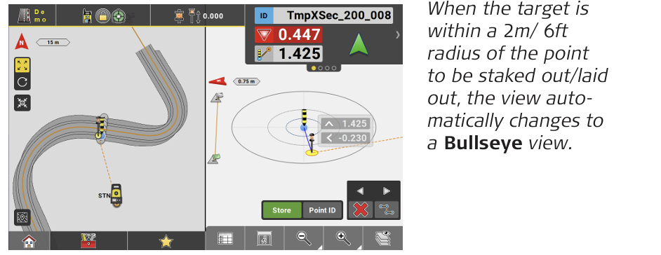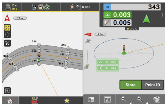 > Multiview Config from within the Map Handler to select a different view option. - Move the target until it is within position and height tolerance. Then tap Store and mark the staked position in the field.
