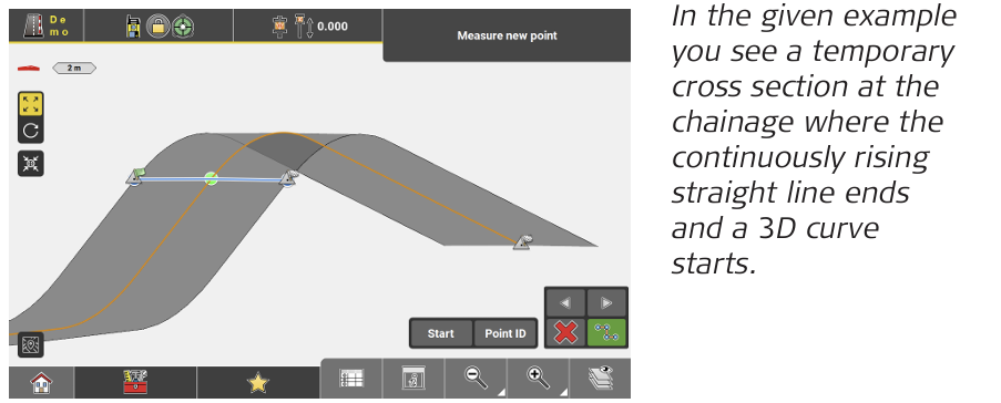 ➜ If there are changes in the continuous rise or fall of a road line, this will also make temporary cross sections being displayed.