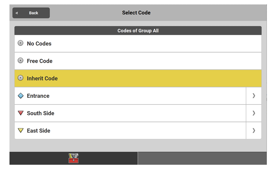 - Tap Start in the Measure bar. Then, before storing the point, tap Code.