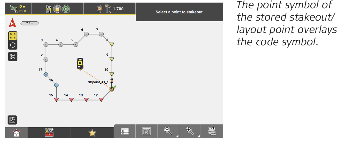 - Select the next point to be staked out/laid out.
