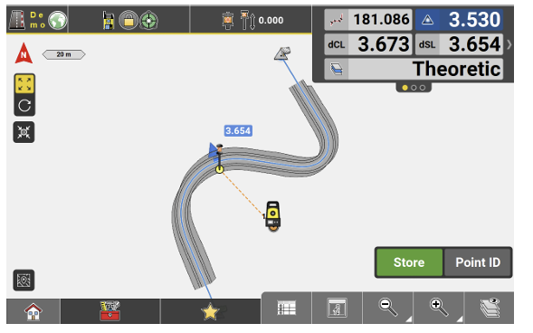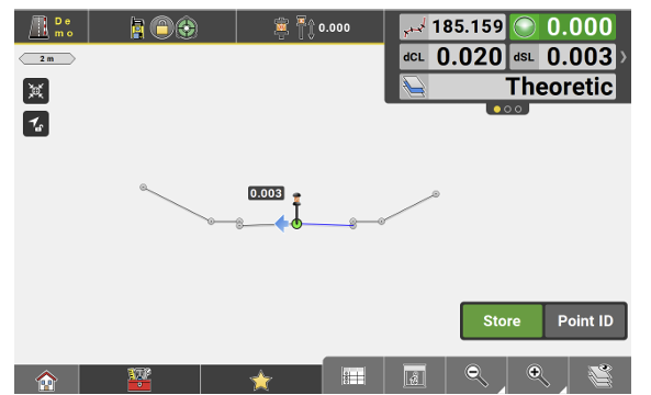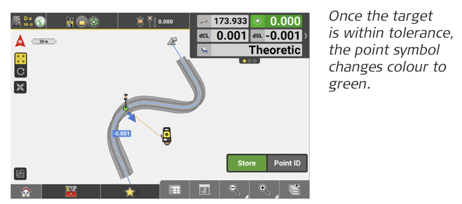 - Once the target is within tolerance, tap Store and mark the staked position in the field.