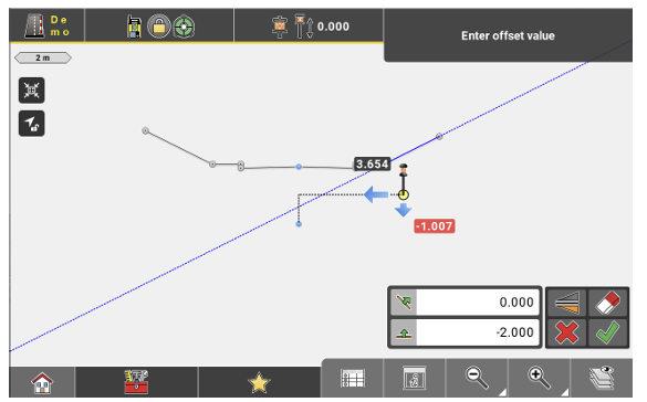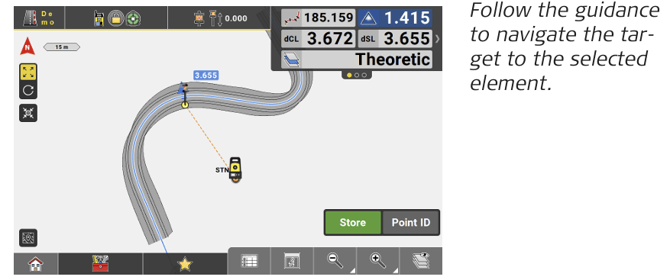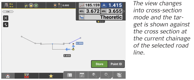 ➜ In order to get the height into tolerance, optionally switch to the cross-section view for support. See also: Stake out Road Lines using Cross Section view