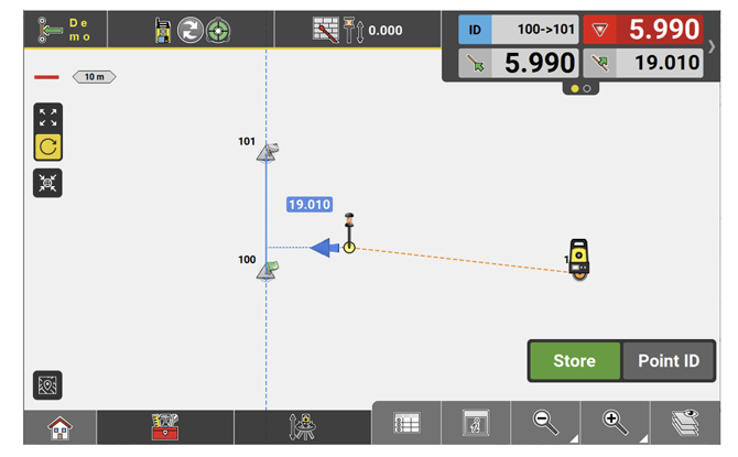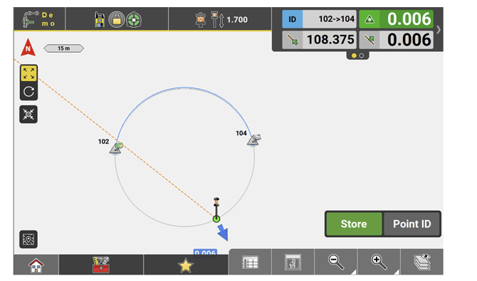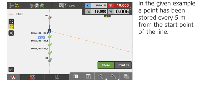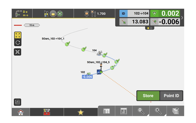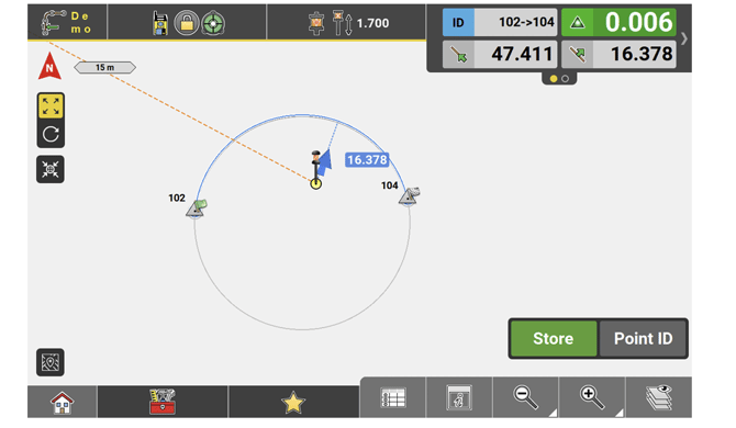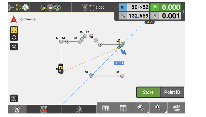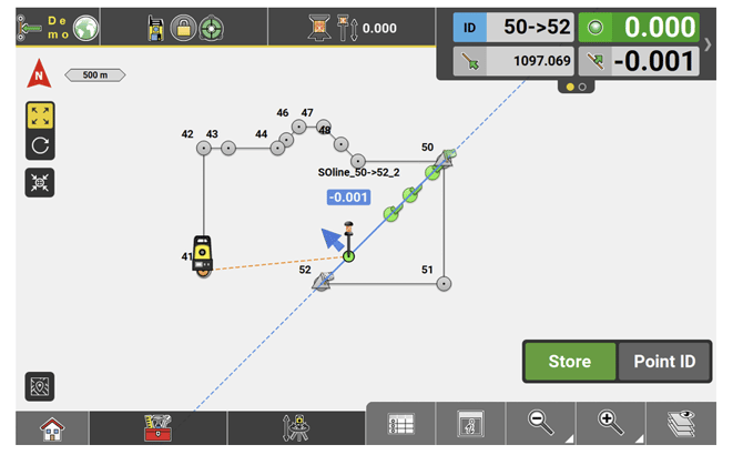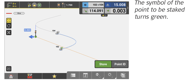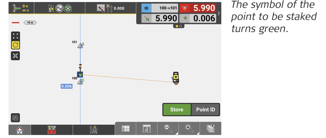 - Once the target is within tolerance, it changes colour to green. Press Store and mark the staked/laid out position (in the field).