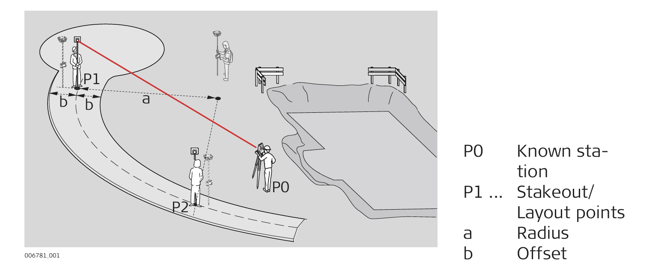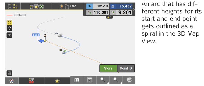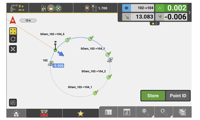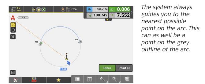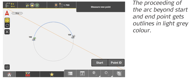- Define or select the arc to be staked out/laid out by tapping the relevant elements.