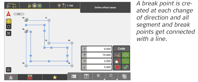 ➜ If a polyline is selected for stakeout/layout, it is only possible to stakeout points between start and end point of the polyline.