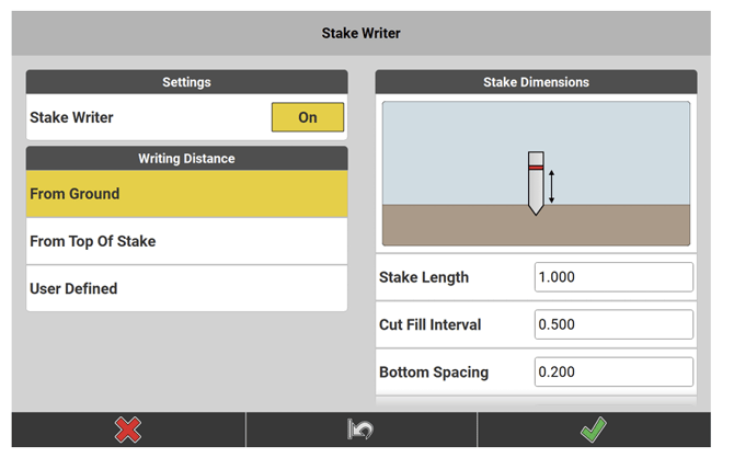 Stake Writer allows for user-friendly marking of cut/fill values on the stakes.