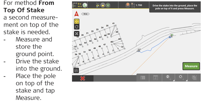 - Enter the length of the stake used for stakeout, only available for method From Ground.