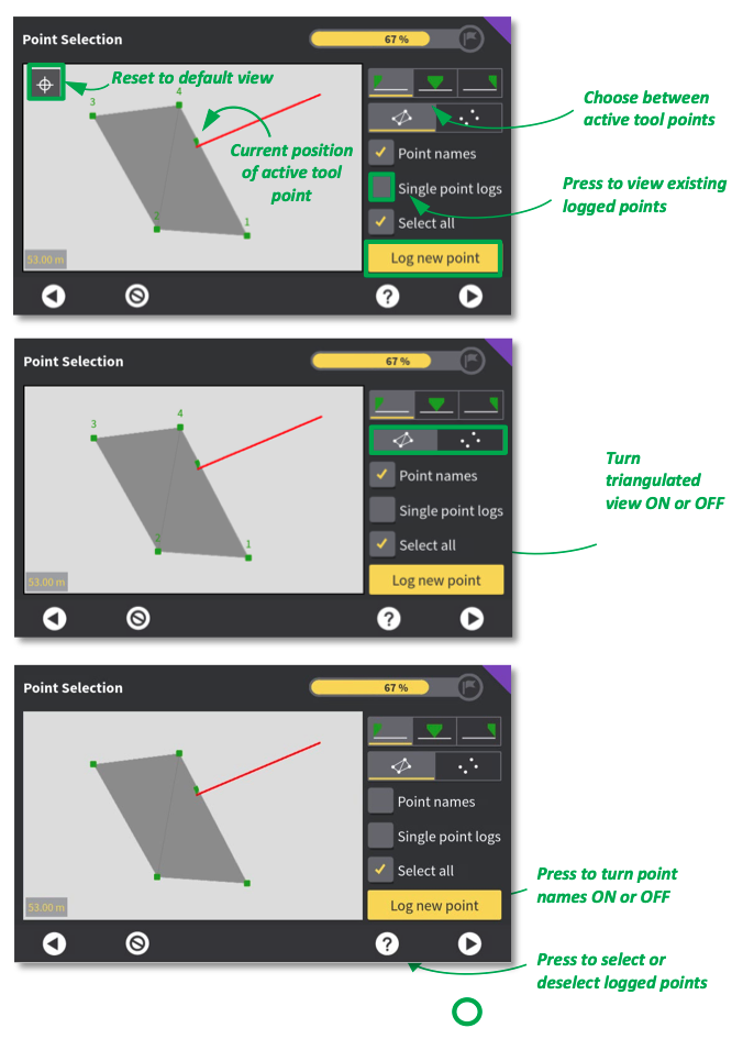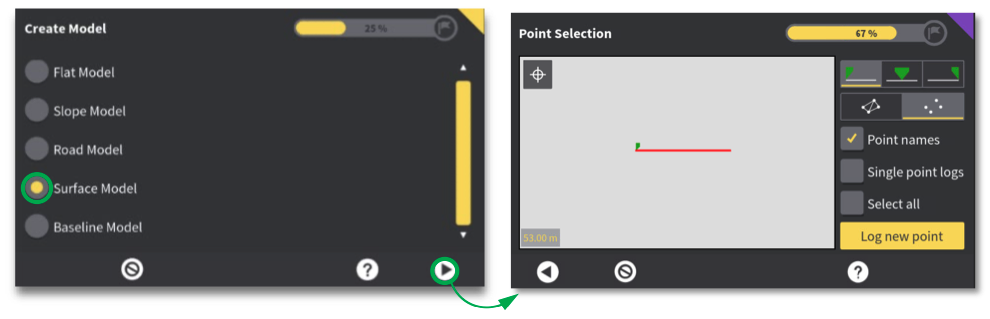 “Log new point”. Turn on “Single point logs” to view and create your surface from existing logged points. Log three