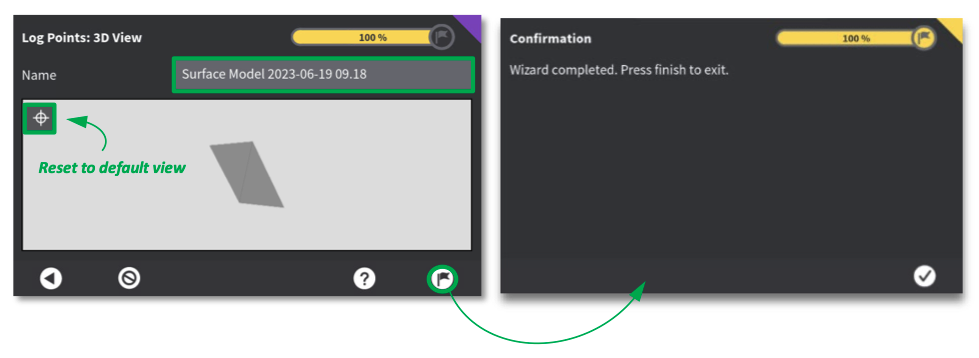 Press flag icon to complete surface model creation.