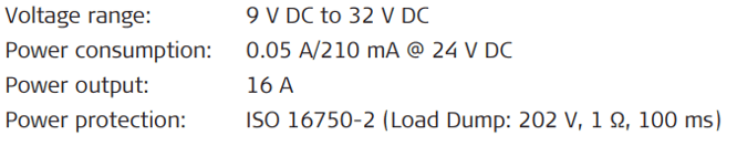Technical Data 5 Dimensions: The overall dimensions are given for the housing including the sockets. Weight Power Environmental Specifications Vibration/Shock