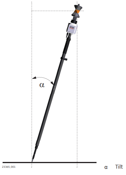 Measurements are reliable and accurate even if the pole is not levelled as the tilt values are calculated by an Inertial Measurement Unit. Tilt values contain