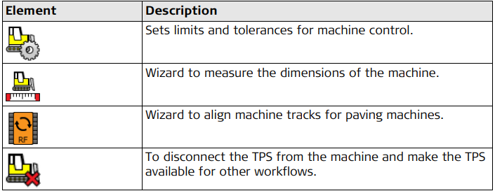 TPS Specific Functionality within iCON site/iCON build: Machine Control Tools 6.1 Map Screen elements Machine Control Tools elements