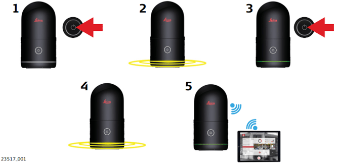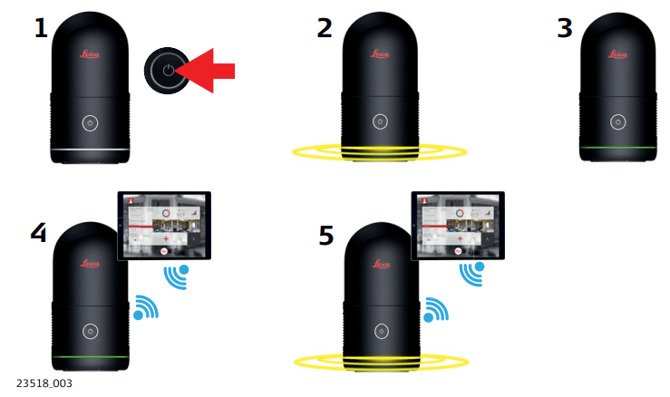 - The BLK360 is starting. The ring-shaped LED is blinking yellow.