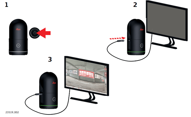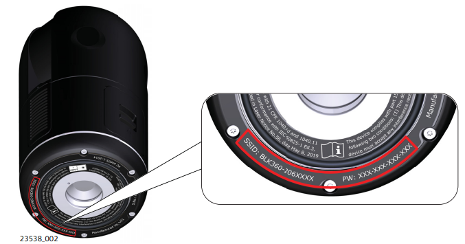 - If the ring-shaped LED is continuous green, the BLK360 is ready for operation.