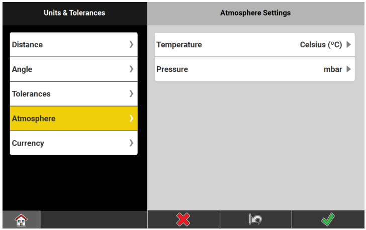 - In the Atmosphere Settings screen, set the units for Temperature and Pressure.