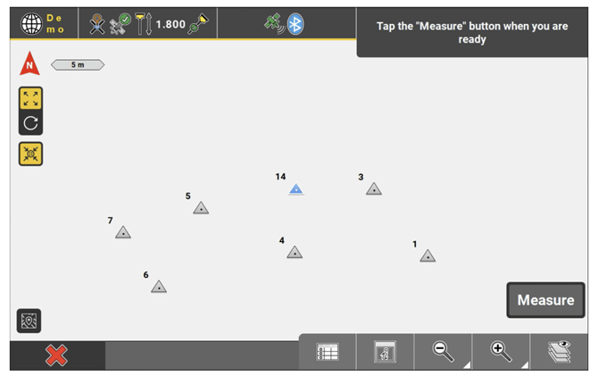 - Position the antenna on the RTK point and tap Start to measure the point.