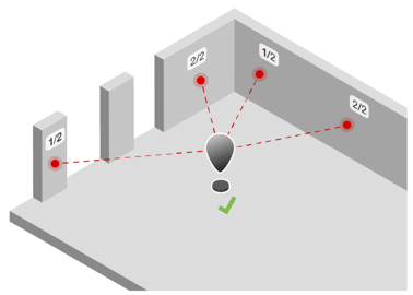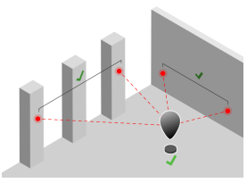 Position the instrument in 2D (no height) using two non-parallel walls or