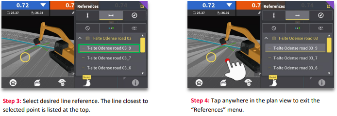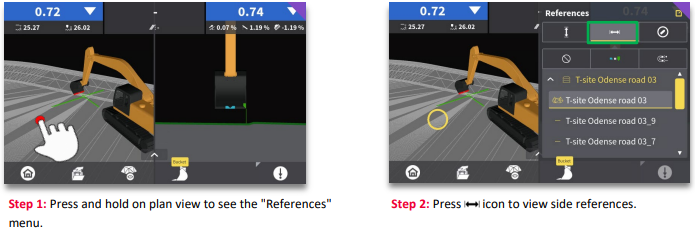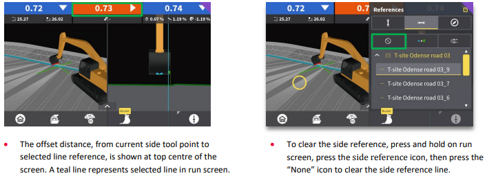 From the run screen, you can select and use different parts of your model as side reference. The side tool point defines where MC1 looks at the model for horizontal guidance. Select a point or line, and you will see a navigation bar at the top of the run screen. This navigation bar will guide you to the selected reference, based on your selected side tool point.