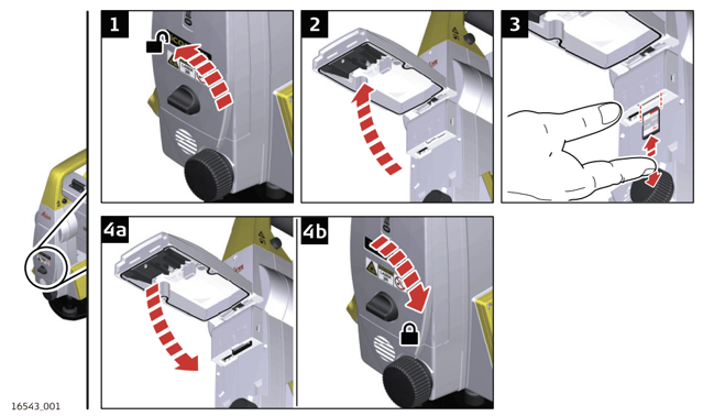 ➜ The SD card is inserted into a slot inside the Communication side cover of the instrument.