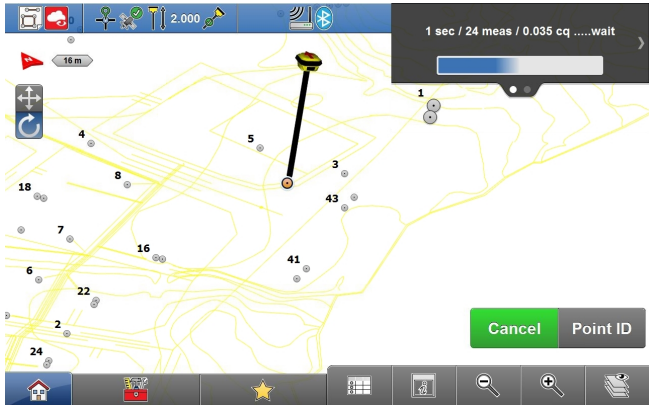 When measuring a point, the pole tip must be stable on the point while the pole should be in slight movement. Tilt compensation is indicated by an icon and the Tilt LED and is maintained by natural pole movement, for example while moving to the next point to be measured.