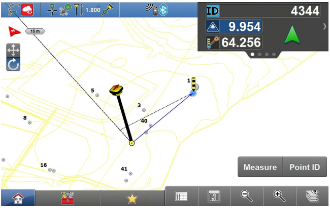 1. Leica iCONstruct Field - Home: Measure:The position of the tilted iCON gps 70 is shown in both, 2D and 3D. The measure method can be defined from the status bar in both cases